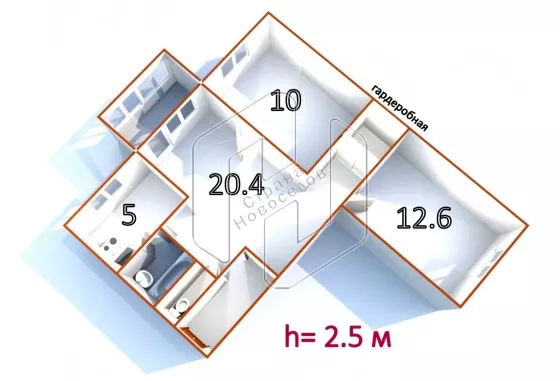 Общая площадь квартиры - 55 кв. м (без учета балкона), комнат - 20,4, 12,6 и 10 кв. м, кухни - 5 кв. м, высота потолков - 2.5 м. Квартира с отличной планировкой: комнаты расположены на разные стороны дома, кладовка, санузел раздельный. Установлены пластиковые стеклопакеты, трубы поменяны.