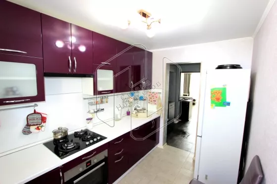 Продается 3-комнатная квартира в Рузаевке по ул. Ухтомского, д. 28. Квартира находится на 5-м этаже 5-этажного кирпичного дома 1989 года постройки. Общая площадь квартиры - 56,4 кв. м (БЕЗ учета лоджии), комнат - 16,6, 12,9 и 8,3 кв. м, кухни - 7,1 кв. м. В квартире сделан евроремонт: пластиковые стеклопакеты, стены и полы выравнены, на полу ламинат, в прихожей плитка, санузел отделан современной плиткой, по всей квартире натяжные потолки с точечными светильниками, лоджия застеклена пластиковыми стеклопакетами, выход на нее из зала.