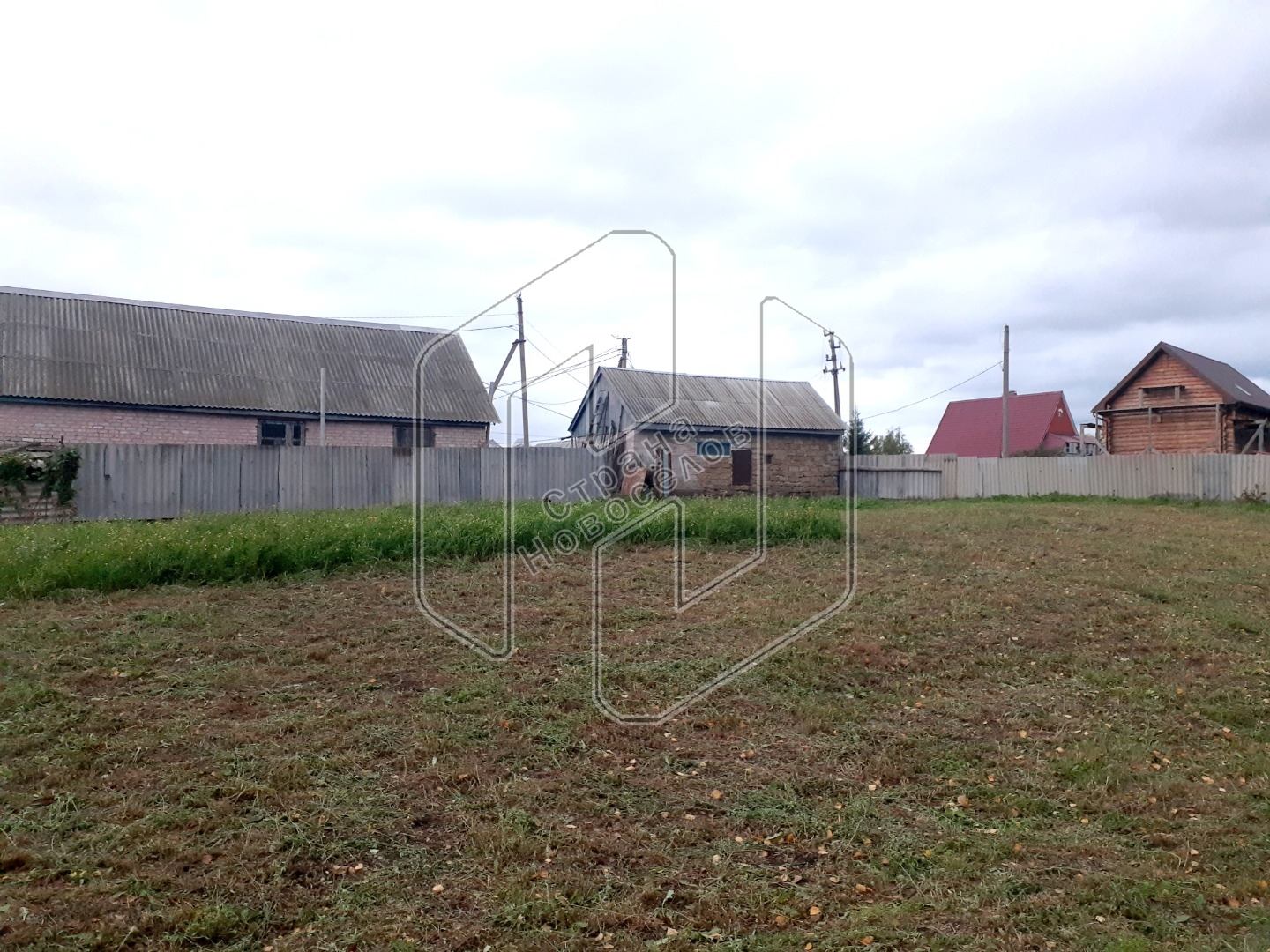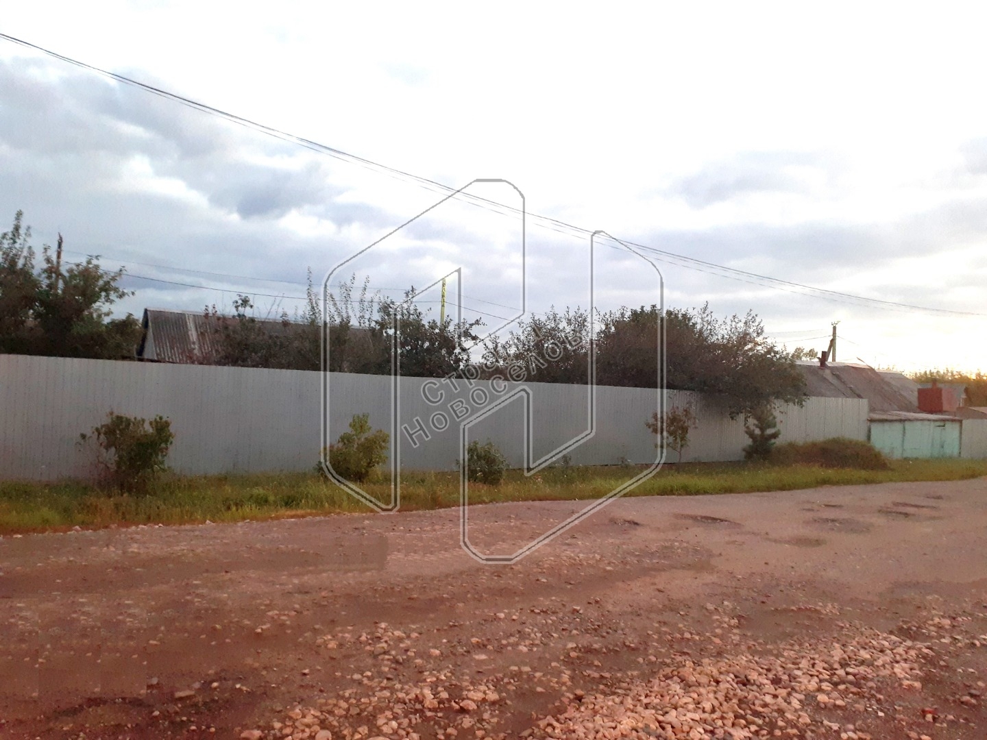 Площадь - 1500 кв. м, свет, газ, центральный водопровод, асфальтированная дорога проходят по границе.